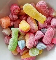 Sugar, glucose syrup, acid: citric acid; flavouring, colours: E102, E110, E122, E124, E133, E142.